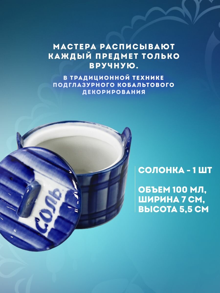 Солонка "кадка", высота 5 см. Ручная роспись. Фарфор. Галактика г. Гжель информация: