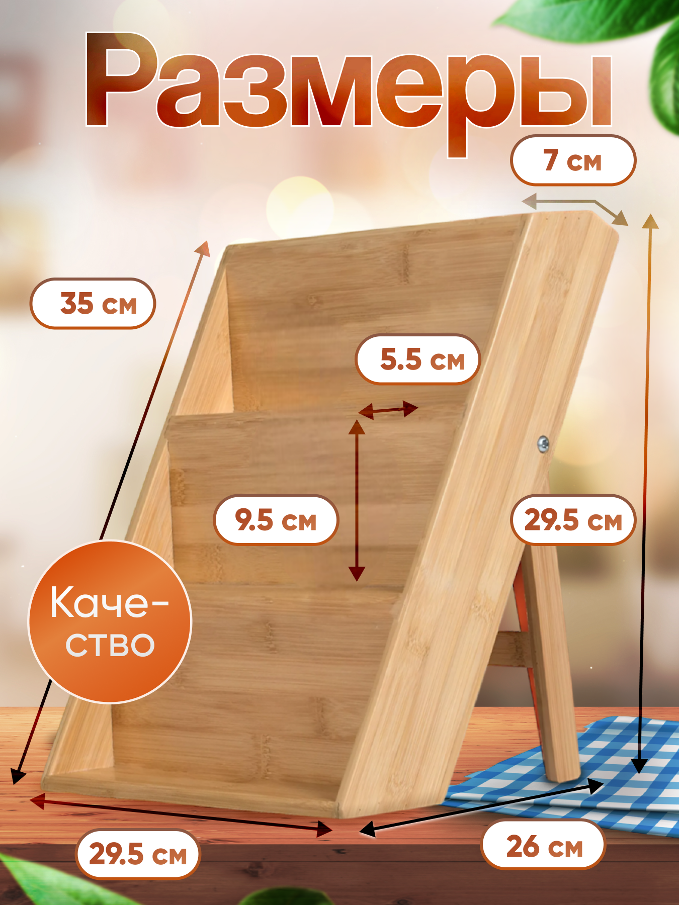 Полочка для специй HomeGoods подставка для баночек 26х30, бамбуковая, 3 яруса информация: