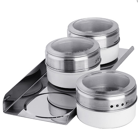 Отзывы на Набор баночек на магните для приправ, специй и сыпучих продуктов 3 х 100 мл. на подставке нержавеющая сталь крышка пластик белый