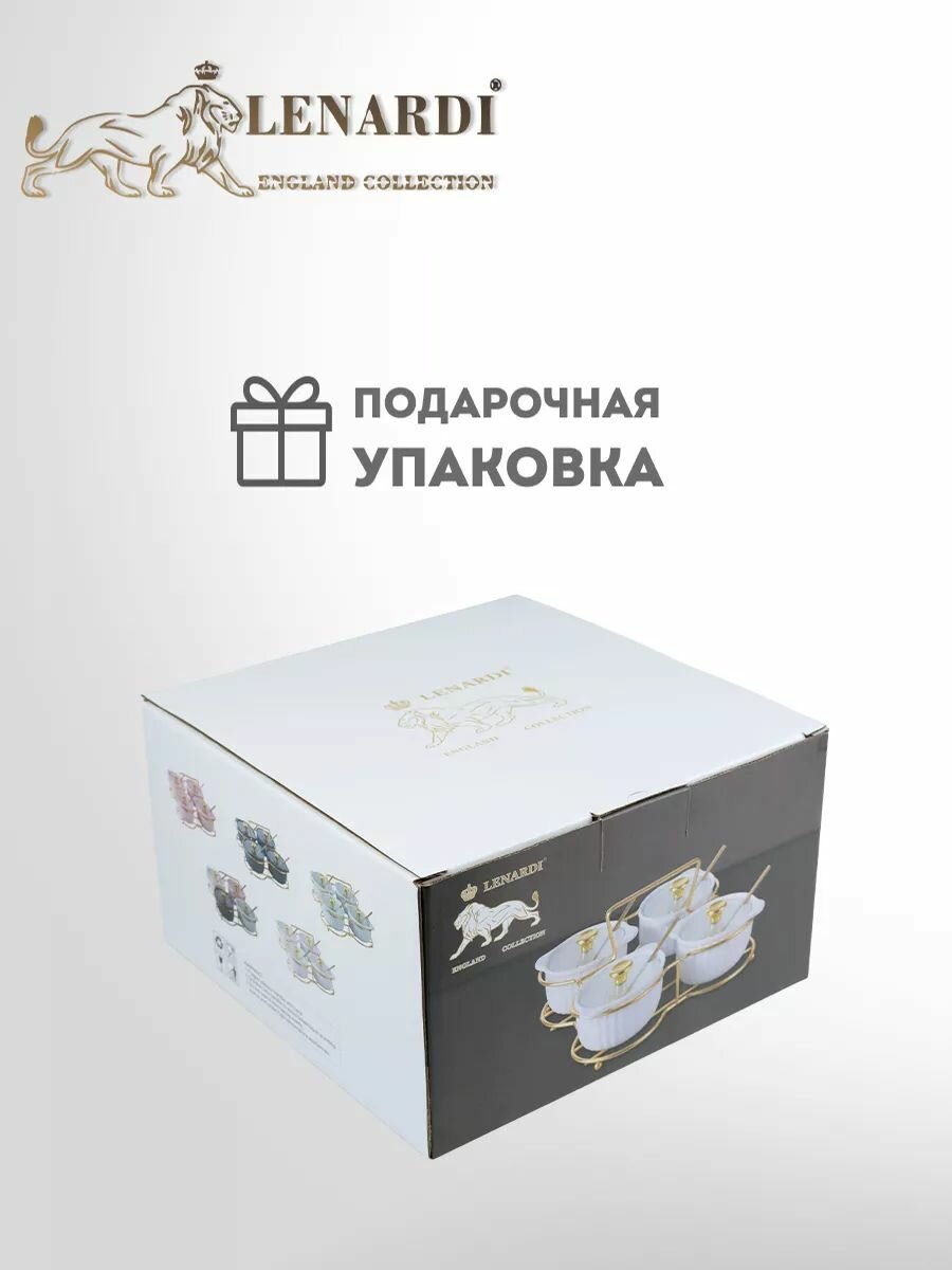 10 цен на Набор из 4 баночек 150 мл для специй с ложками на подставке "lavish, розовый" Фарфор. Lenardi. Подарочная упаковка