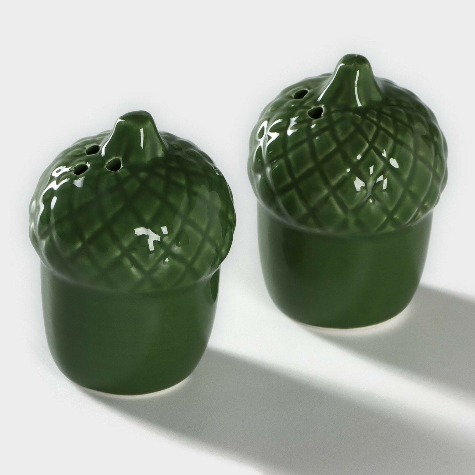 10 цен на Набор для специй Доляна «Лист», 3 предмета: солонка 80 мл, перечница 80 мл, подставка, цвет зелёный, 9820286