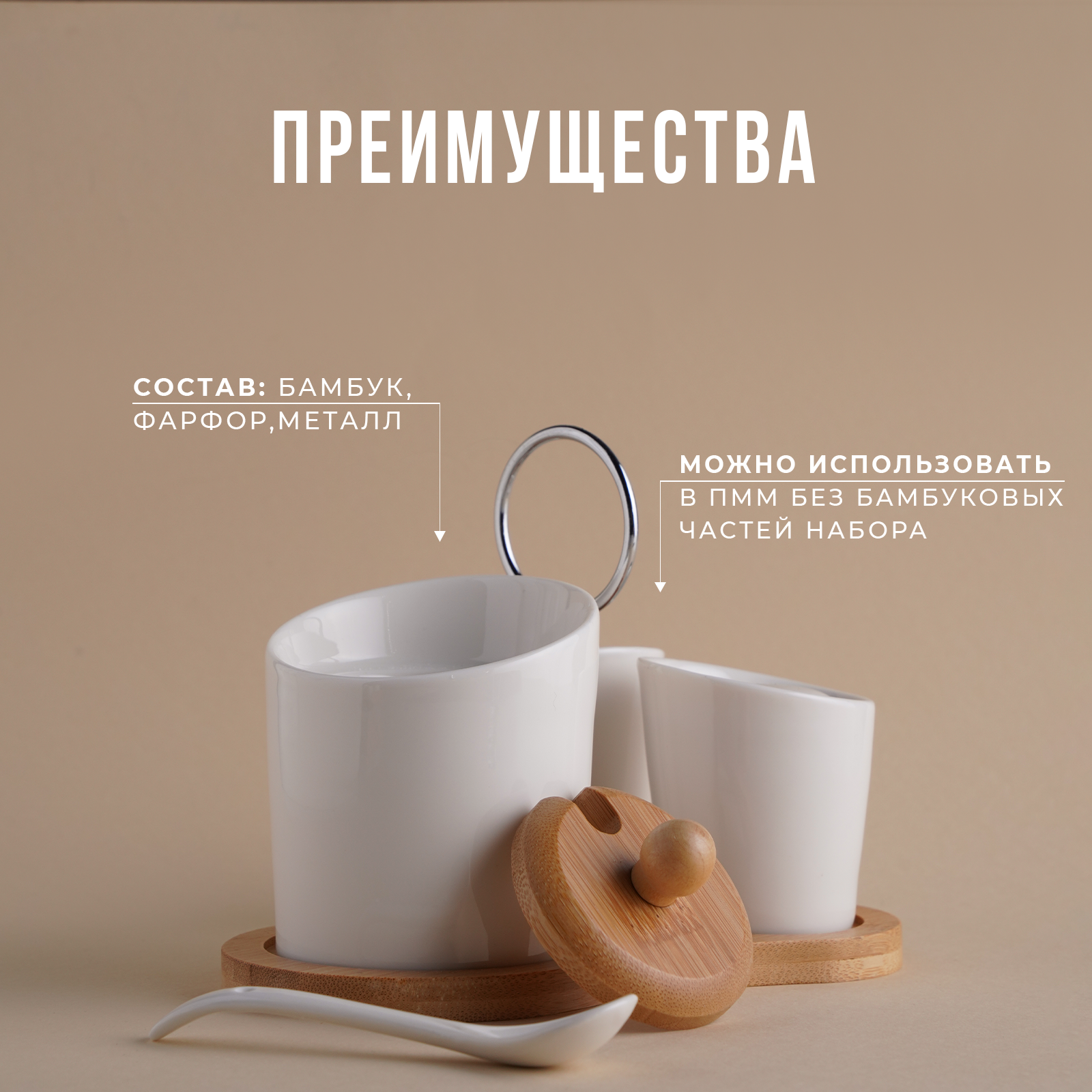 Набор для специй на бамбуковой подставке 3 предмета: солонка 100 мл, перечница 100 мл, салфетница, фарфор, белый 1 199 ₽