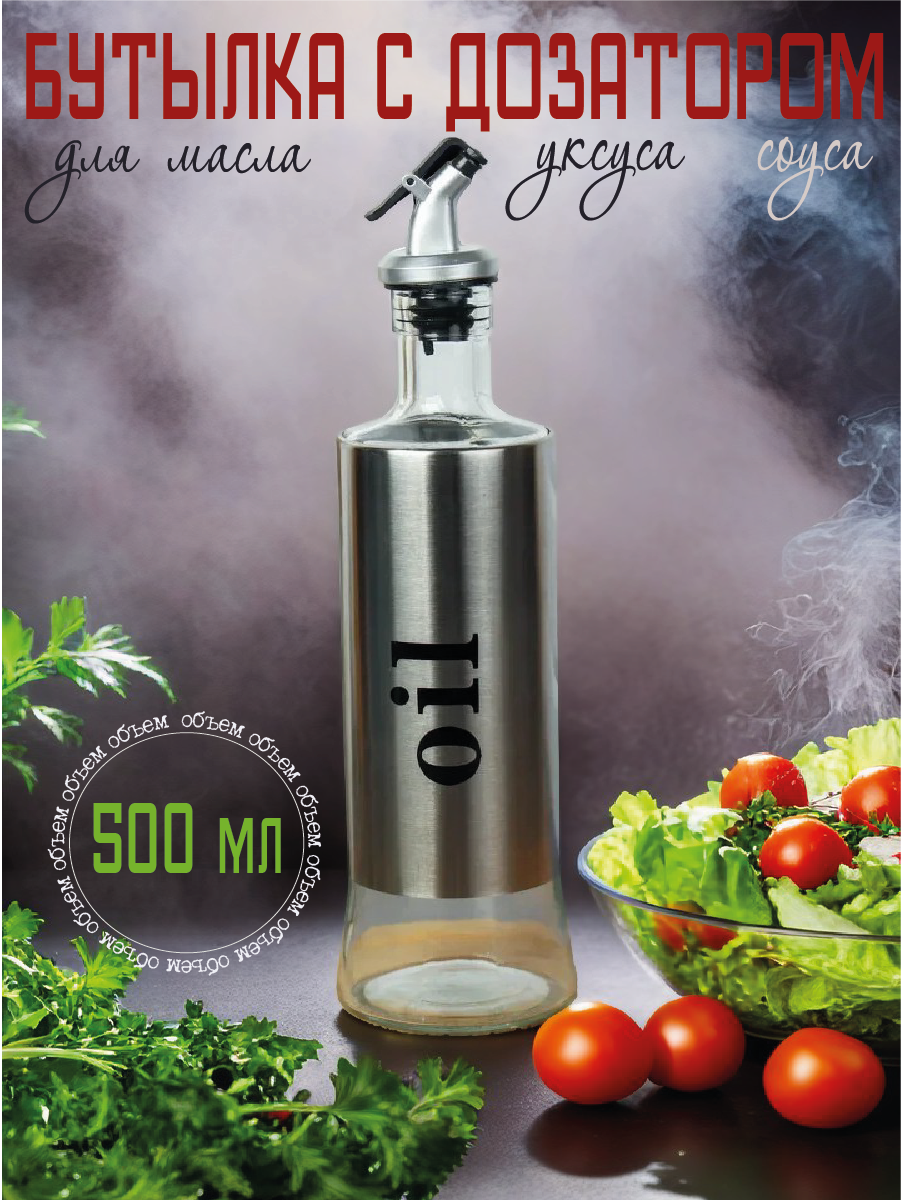Бутылка для масла с дозатором, 500 мл, стекло, прозрачная с металлом информация: