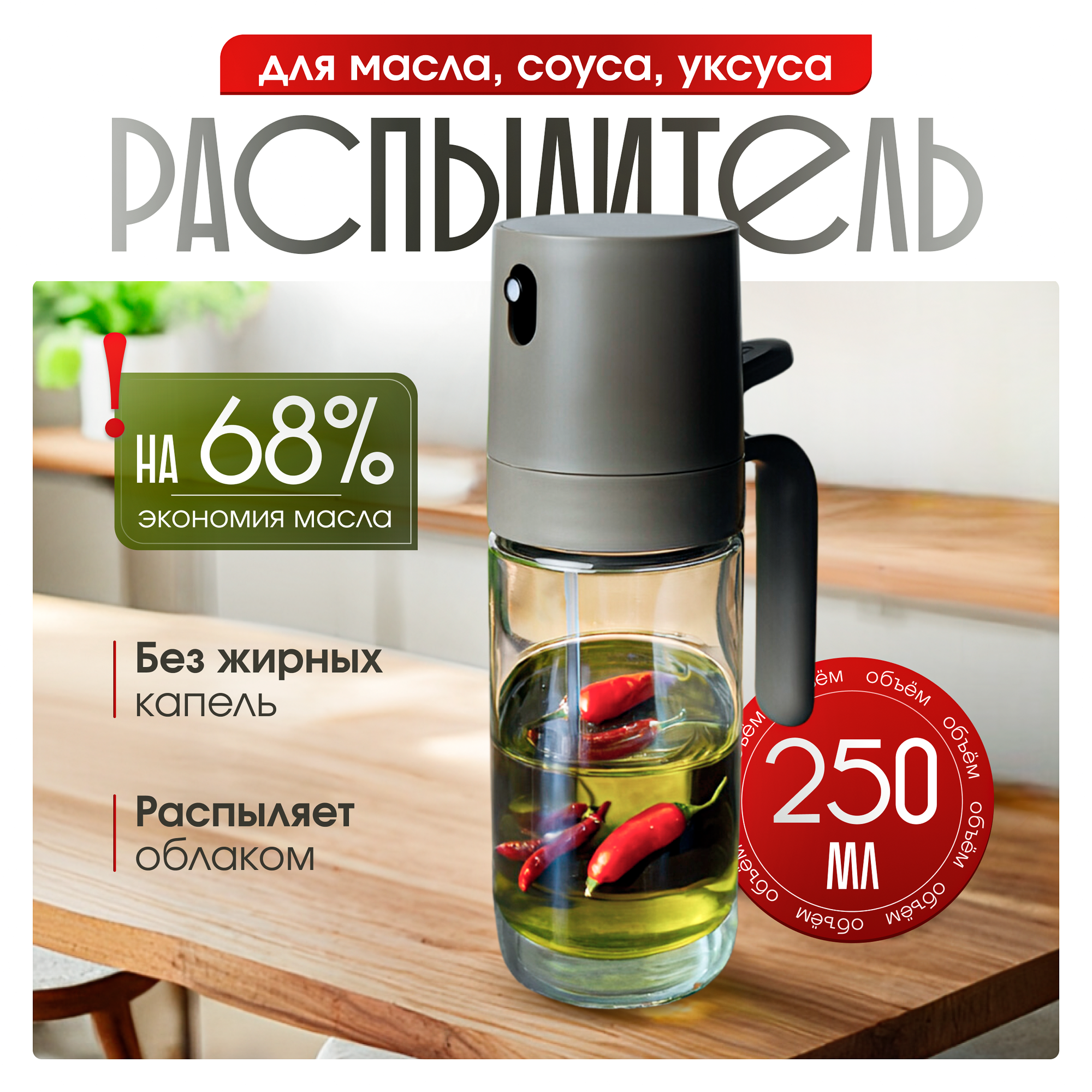 Распылитель для масла и уксуса, емкость для соуса с дозатором пульверизатором, 250 мл информация: