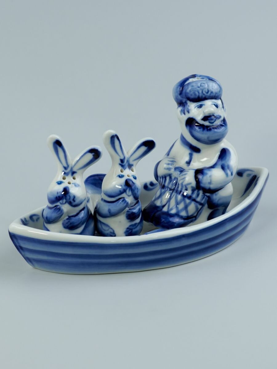 Набор для специй. Галактика г. Гжель. "Дед Мазай и зайцы". 4 предмета. информация: