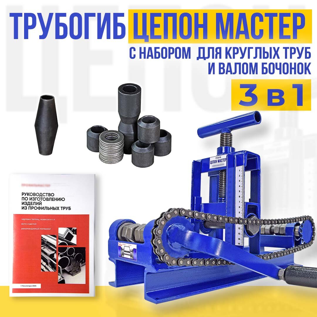 Трубогиб ручной цепон мастер. 3 в 1. С валом бочонок и набором для круглых труб. информация:
