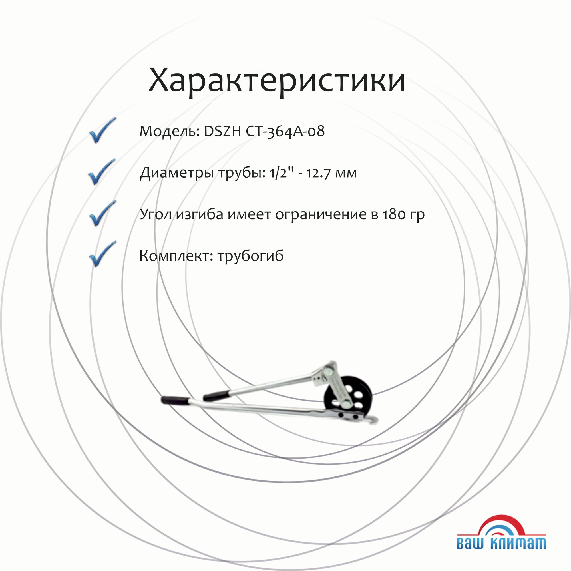 Трубогиб ручной рычажного типа DSZH CT-364A-08, для медных/алюминиевых труб, 1/2" информация: