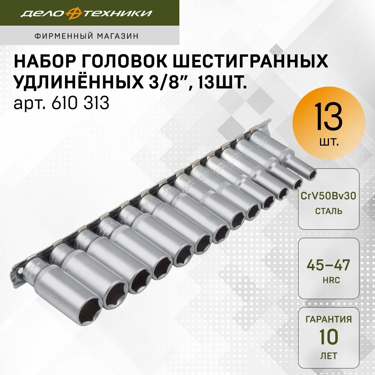 Набор головок шестигранных удлинённых 3/8", 13шт, Дело Техники, 610313 информация:
