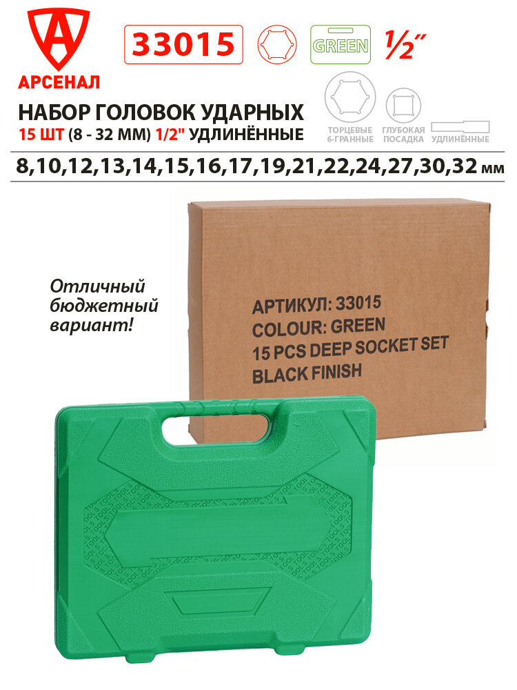 Мы выбрали 10 лучших цен на Набор головок УДАРНЫХ 15 шт (8 - 32 мм) 1/2" удлинённые, зелёный кейс, 33015. Перед тем как купить Набор головок УДАРНЫХ 15 шт (8 - 32 мм) 1/2" удлинённые, зелёный кейс, 33015 посмотрите найденные предложения из Яндекс Маркета и других сайтов на основе XML фидов.