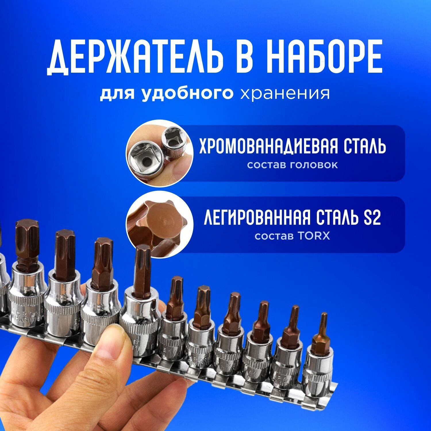 10 цен на Набор головок со вставкой TORX 11 предметов ТS10-ТS60 с держателем