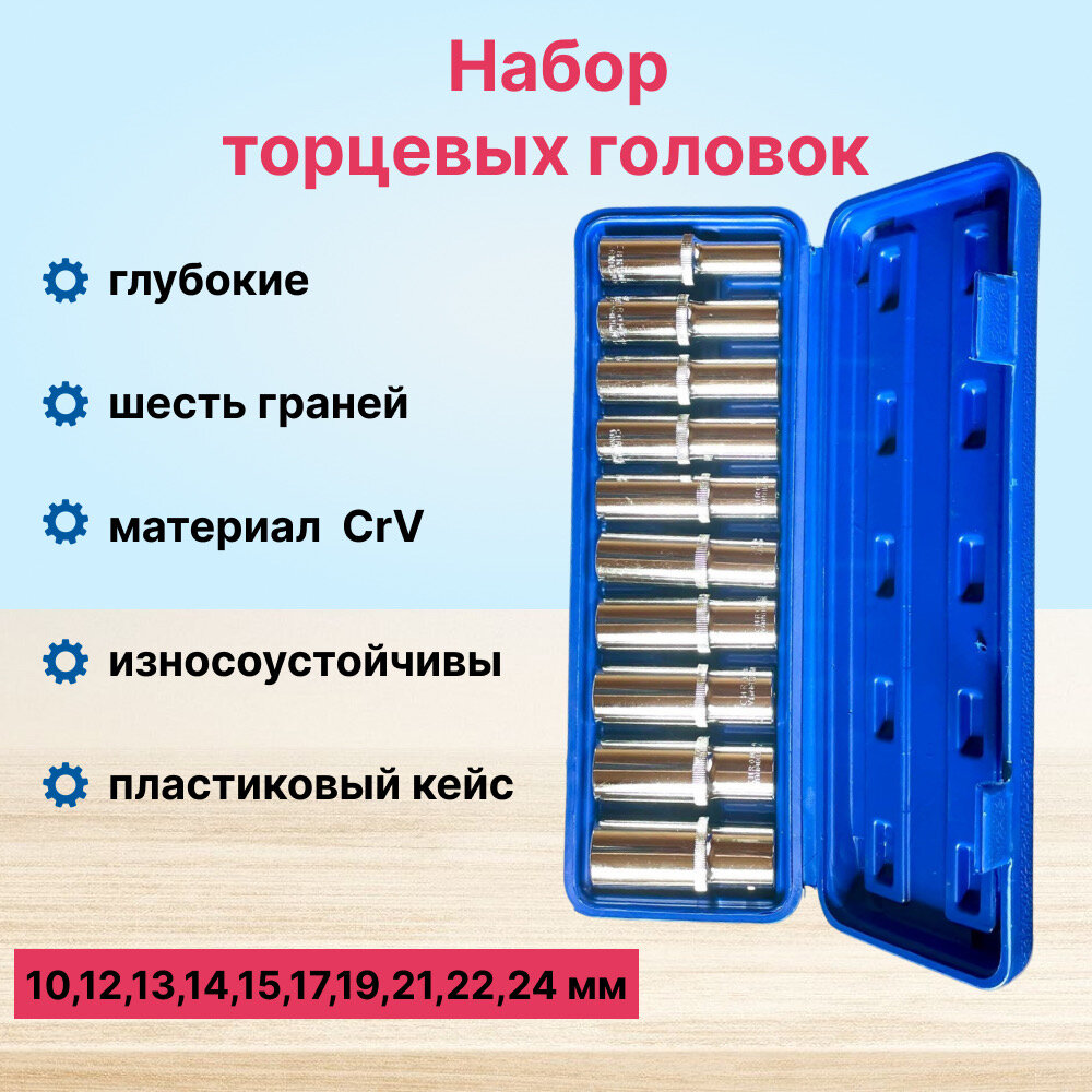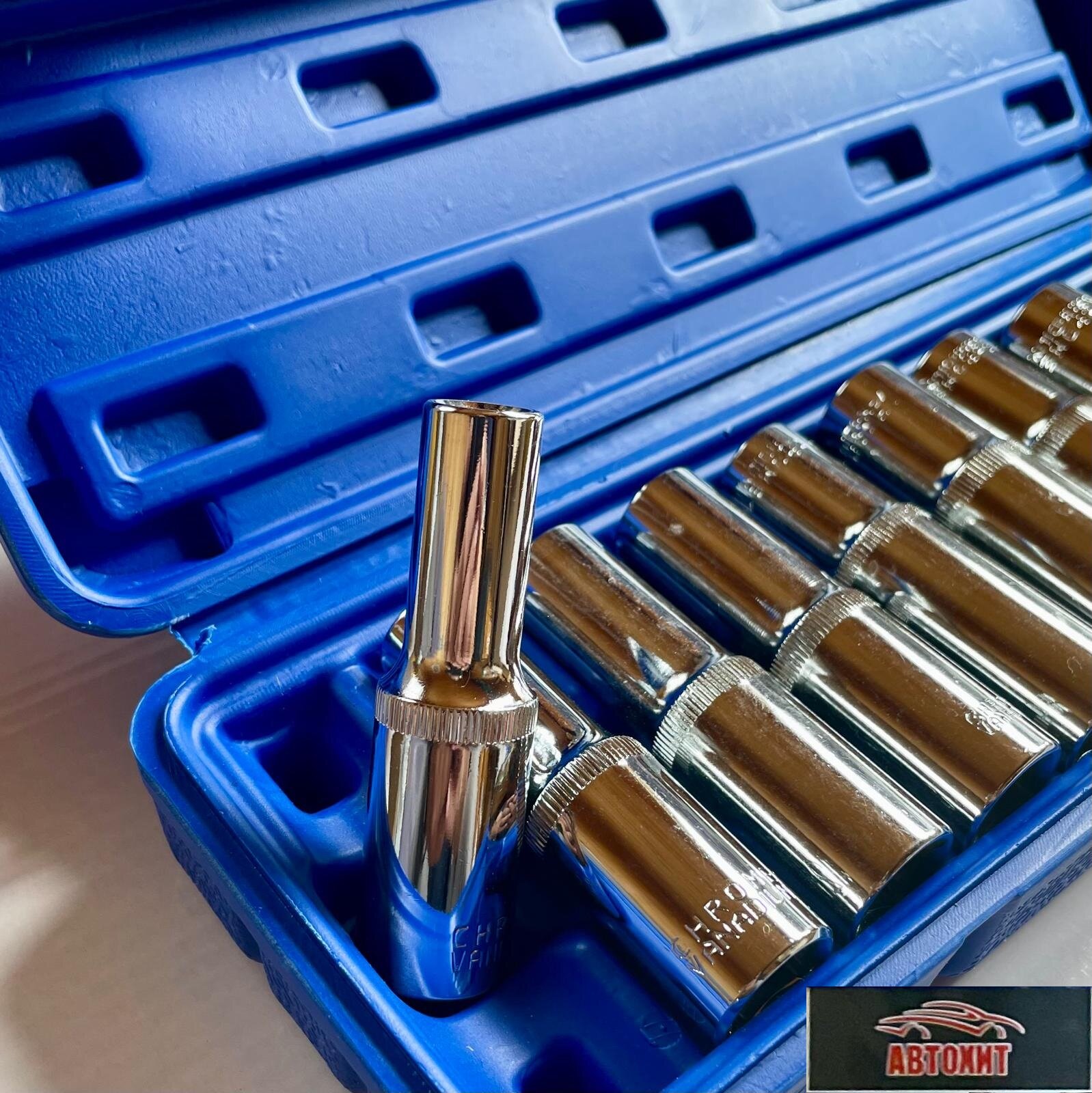 Набор торцевых головок . Автохит, 10 предметов , хром, глубокие. В кейсе. информация: