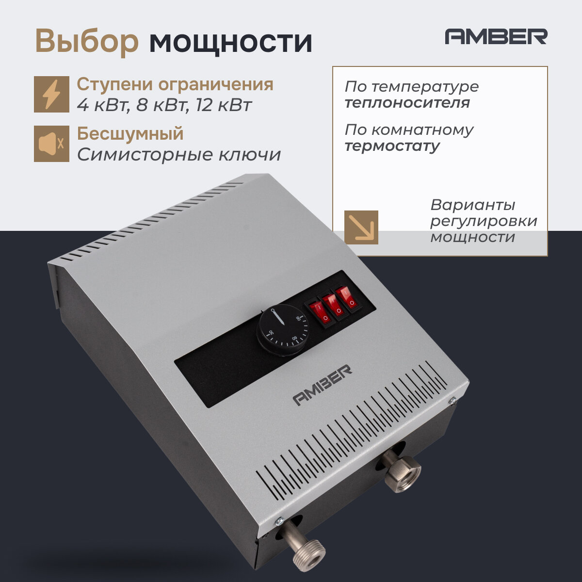 Отзывы на Электрокотел для отопления Amber DHEL 412 Lite одноконтурный котел электрический 4, 8, 12 кВт с сухим ТЭНом