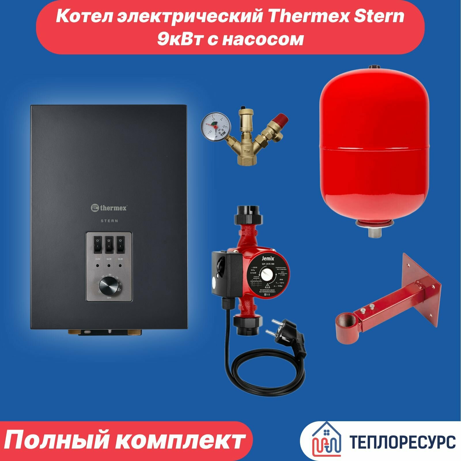 Комплект Котел электрический Thermex Stern 9 кВт с баком на 8л и циркуляционным насосом информация:
