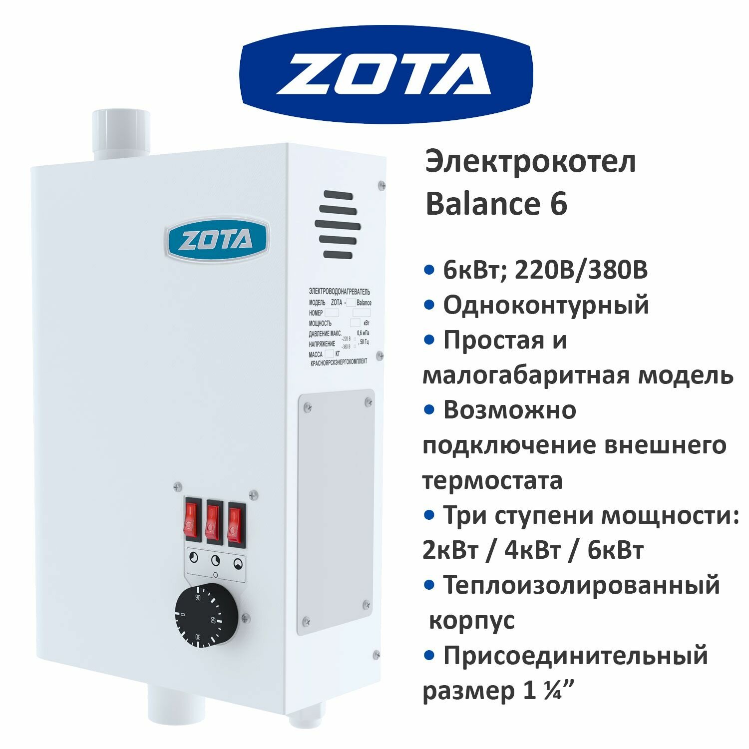 Электрокотел ZOTA balance 6, 6кВт, 220 / 380 В информация: