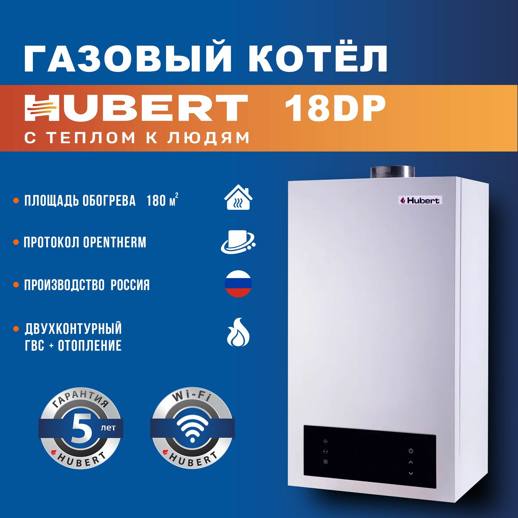 Газовый котел настенный двухконтурный Hubert AGB 18 DP с Opentherm и Wi-Fi информация: