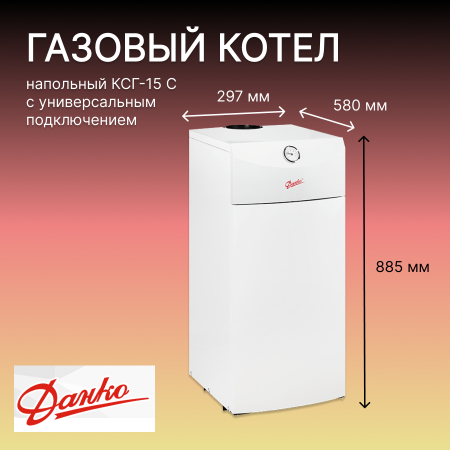 Котел газовый напольный КСГ-15 С Данко с универсальным подключением информация: