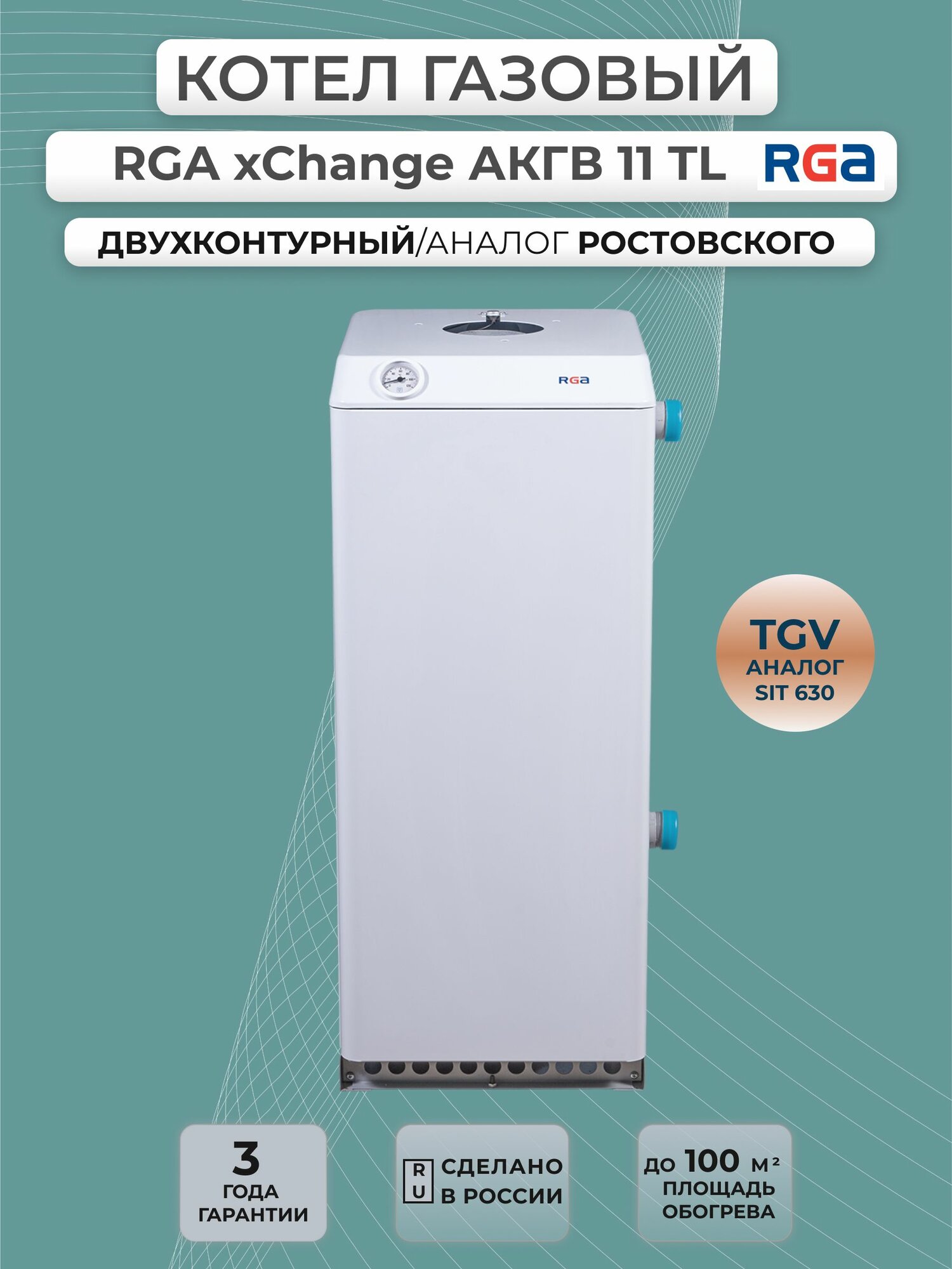Отзывы на Котел газовый RGA АКГВ 11 TL (7 исп) (боковое подключение), двухконтурный, белый