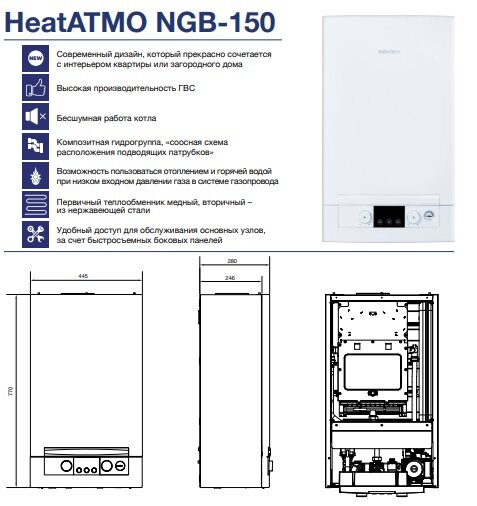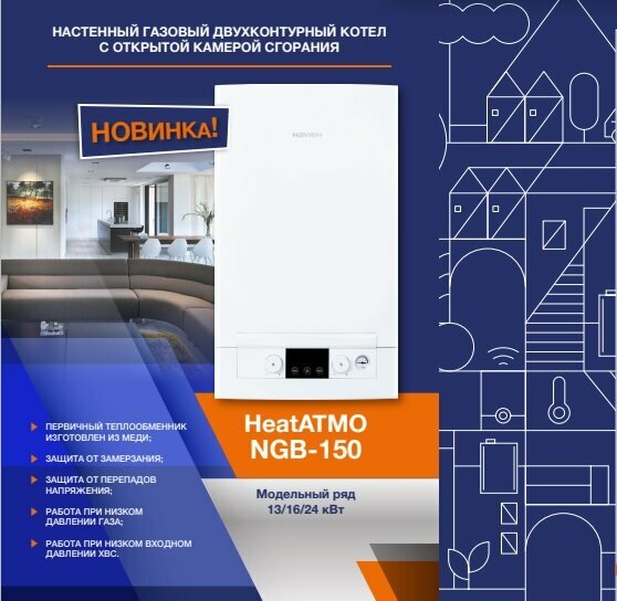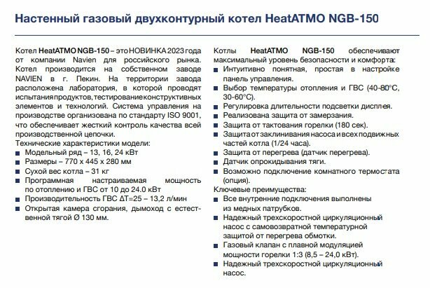 Котел газовый настенный Navien HeatAtmo NGB150-24 A, двухконтурный, отктытая камера сгорания. информация: