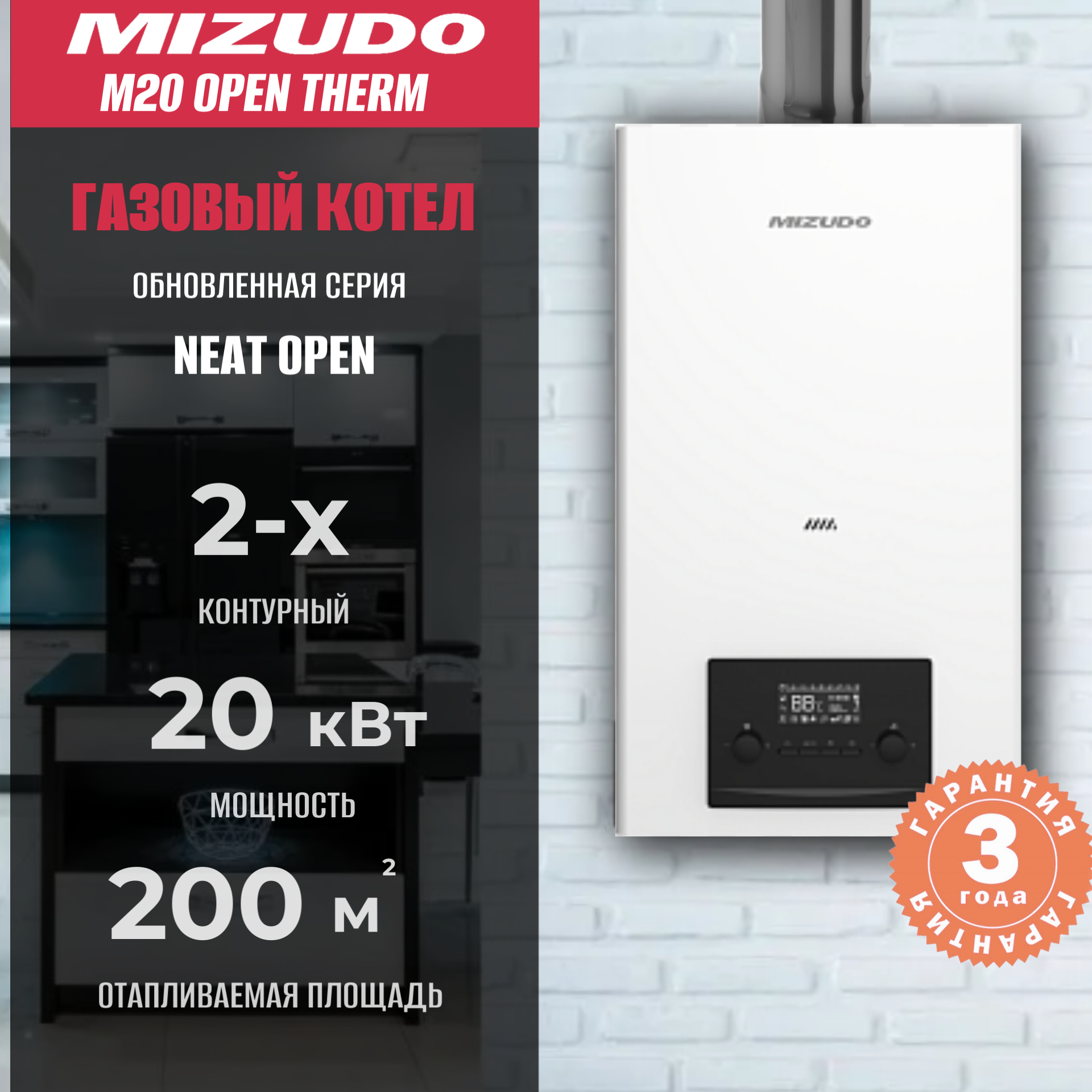 10 цен на MIZUDO NEAT OPEN М20 20кВт, газовый котел, 2-х контурный, атмосферный, раздельный теплообменник OpenTherm