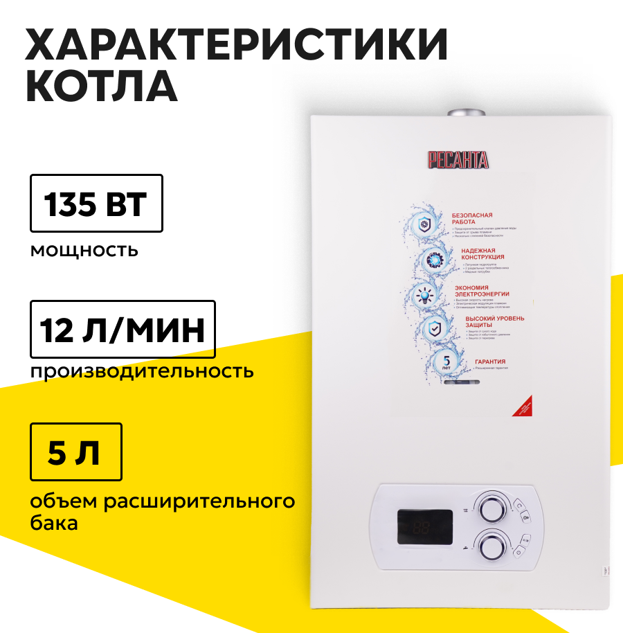 Газовый настенный двухконтурный котел ГК-24 Ресанта. Максимальная мощность 24 кВт информация: