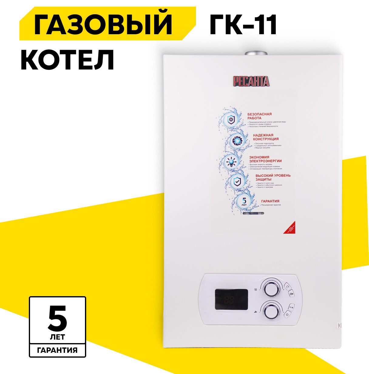 Газовый настенный двухконтурный котел ГК-11 Ресанта. Максимальная мощность 11 кВт информация: