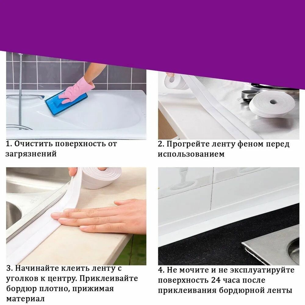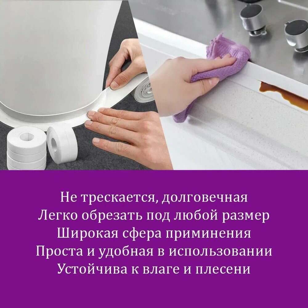 Бордюр для ванны, Бордюрная лента для ванной / cамоклеящаяся бордюрная лента для ванной комнаты, кухни раковины 38 мм х 3,35