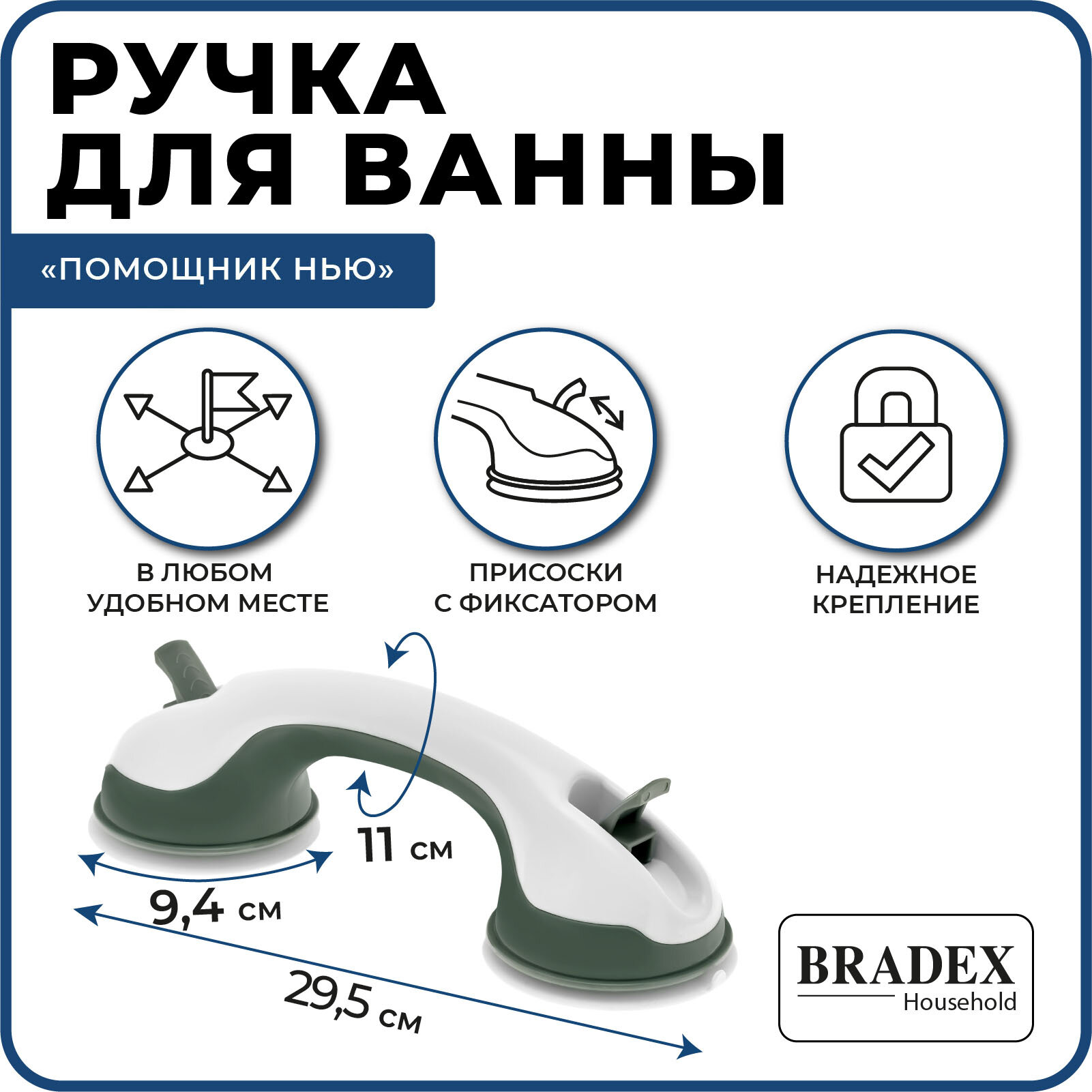 Поручень для ванной туалета "Помощник Нью" Bradex, ручка на присосках для пожилых информация:
