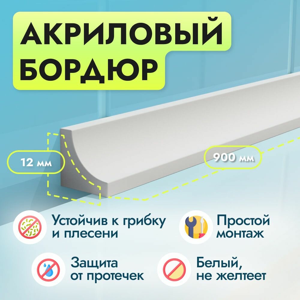 10 цен на Акриловый бордюр для ванной Г12 длина 900 мм, ширина 1.2 см плинтус для ванны