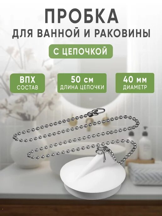 Отзывы на Набор пробок для ванны с цепочкой – 2 шт, резина, универсальный размер