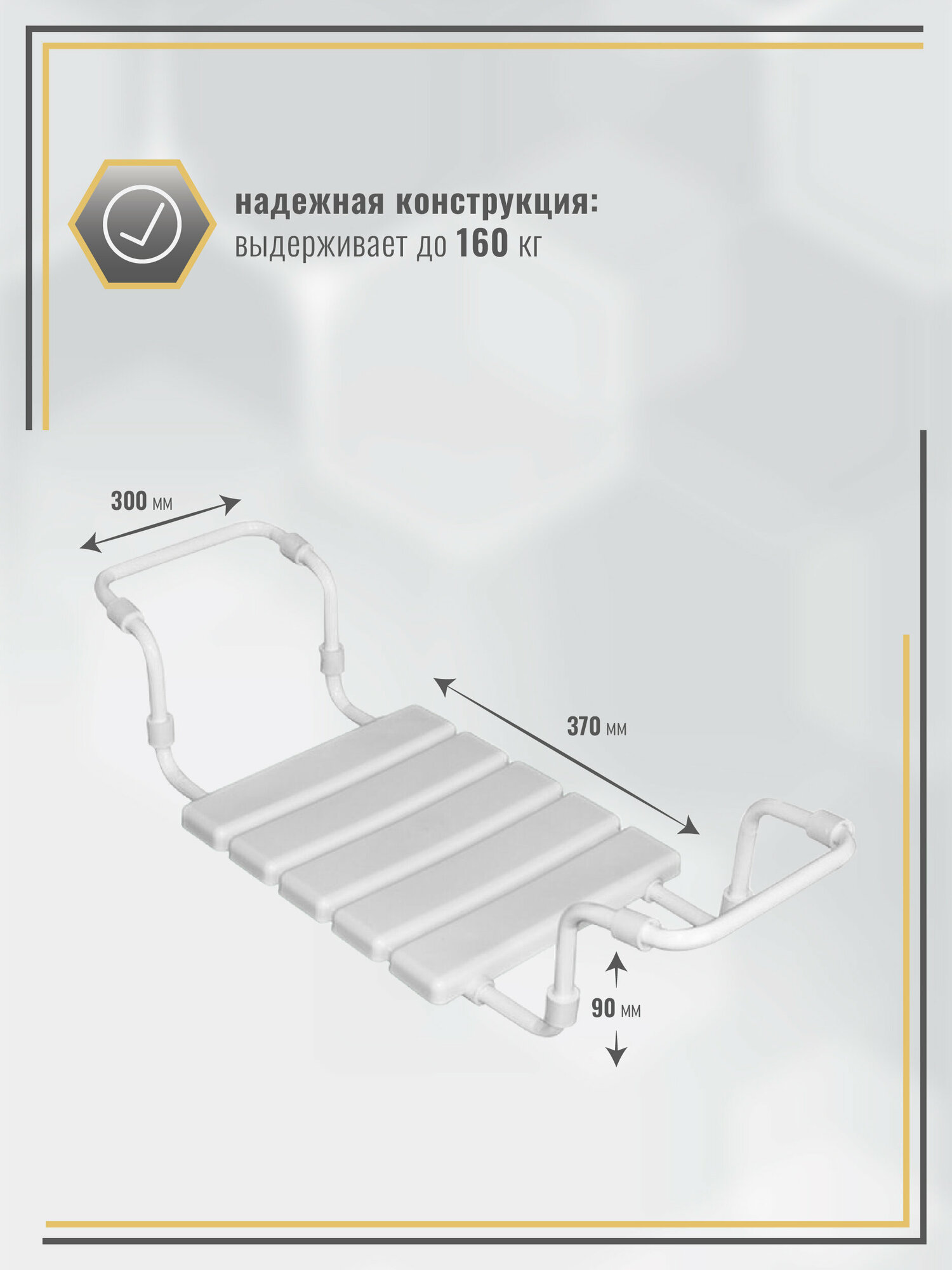 Сиденье в ванную / Сиденье в ванную на раздвижной металлической основе / Сиденье 37х30 см, цвет белый информация: