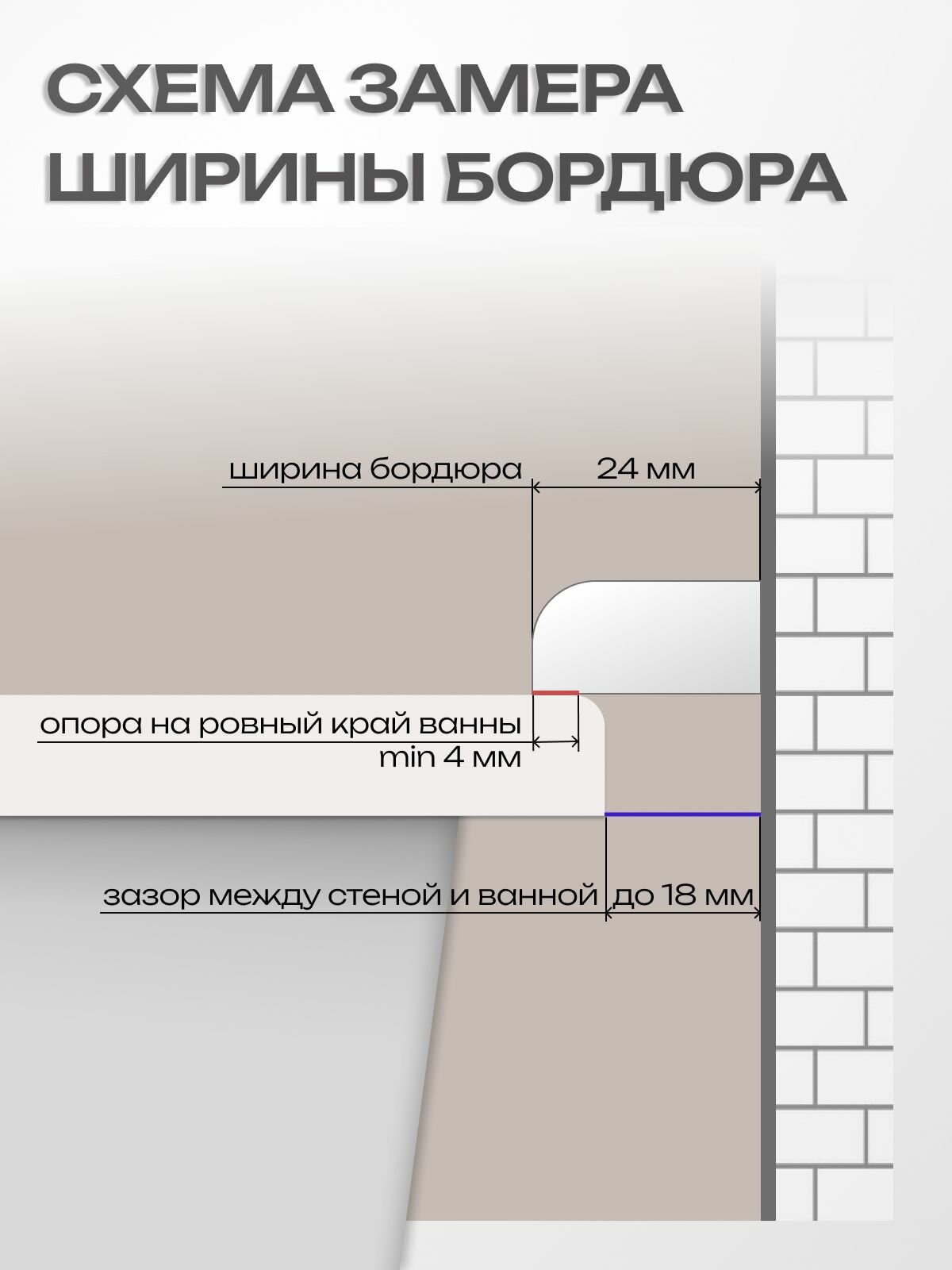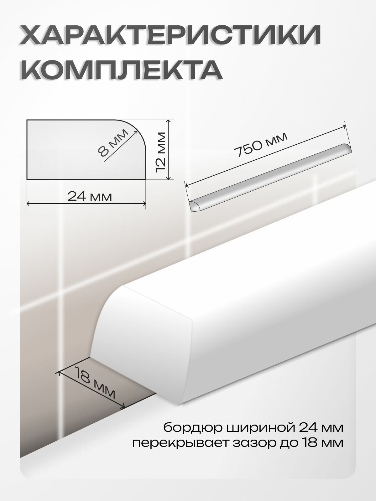 Бордюр для ванны акриловый Ширина 24мм Длинна 750 мм Левый информация: