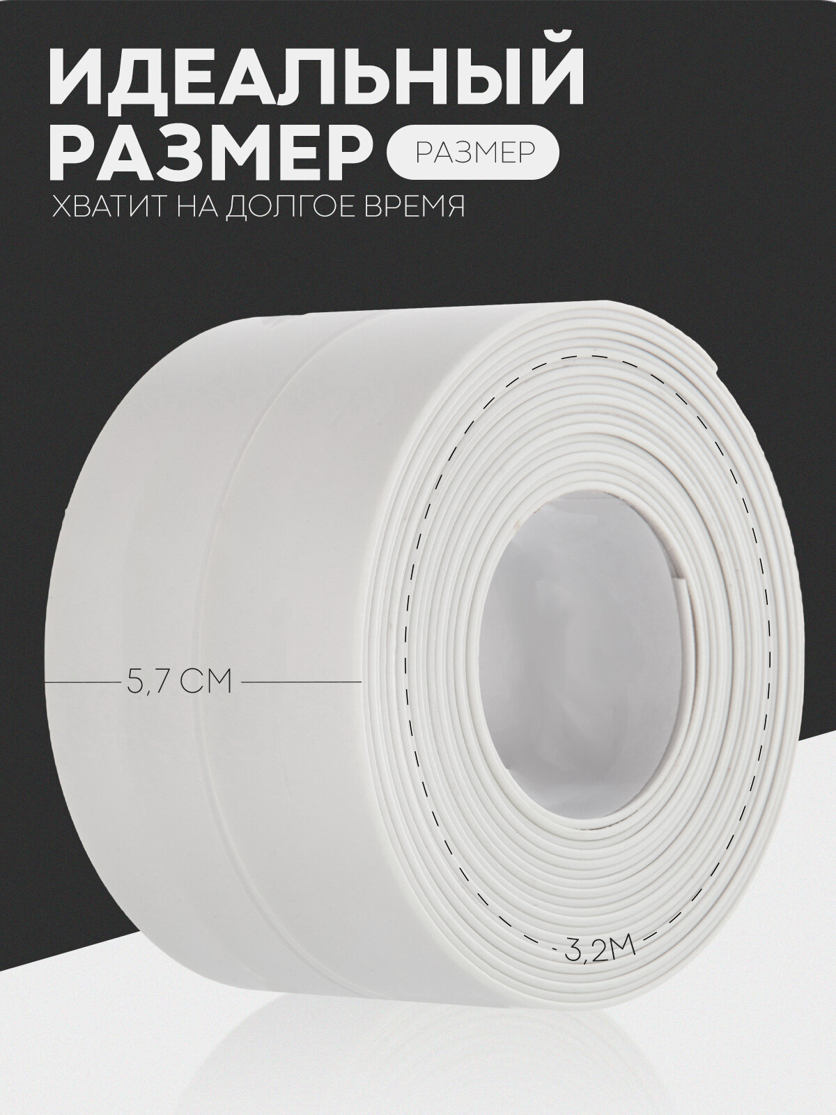 Клейкая бордюрная лента для швов и стыков, Картофан, для ванной комнаты, 3,2 м, 57 мм, белый информация: