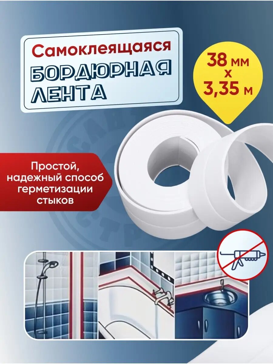 Бордюр для ванны, Бордюрная лента для ванной / cамоклеящаяся бордюрная лента для ванной комнаты, кухни раковины 38 мм х 3,35