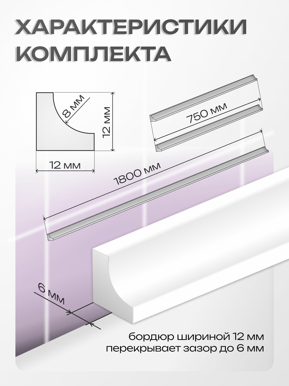 Бордюр для ванны акриловый 12 мм комплект информация: