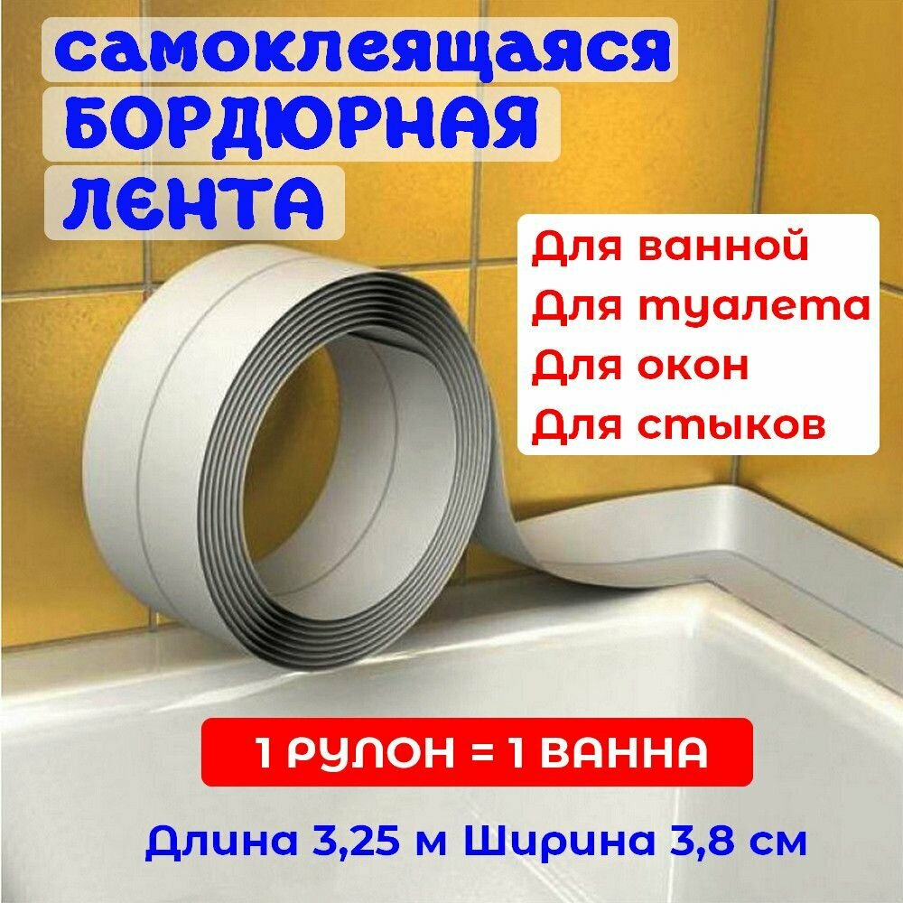 Отзывы на Бордюрная самоклеющаяся лента для ванны, раковины, унитаза, плиты, столешницы, окон белая 3,8 см х 3,25 м