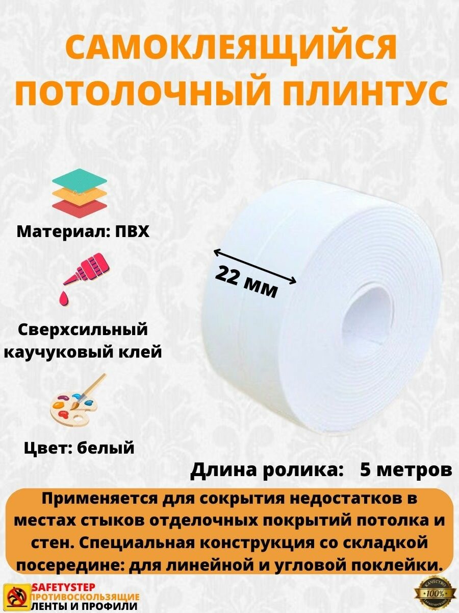 10 цен на Потолочный плинтус самоклеящийся 2.2 см х 5 метров, потолочный карниз из пвх, белый