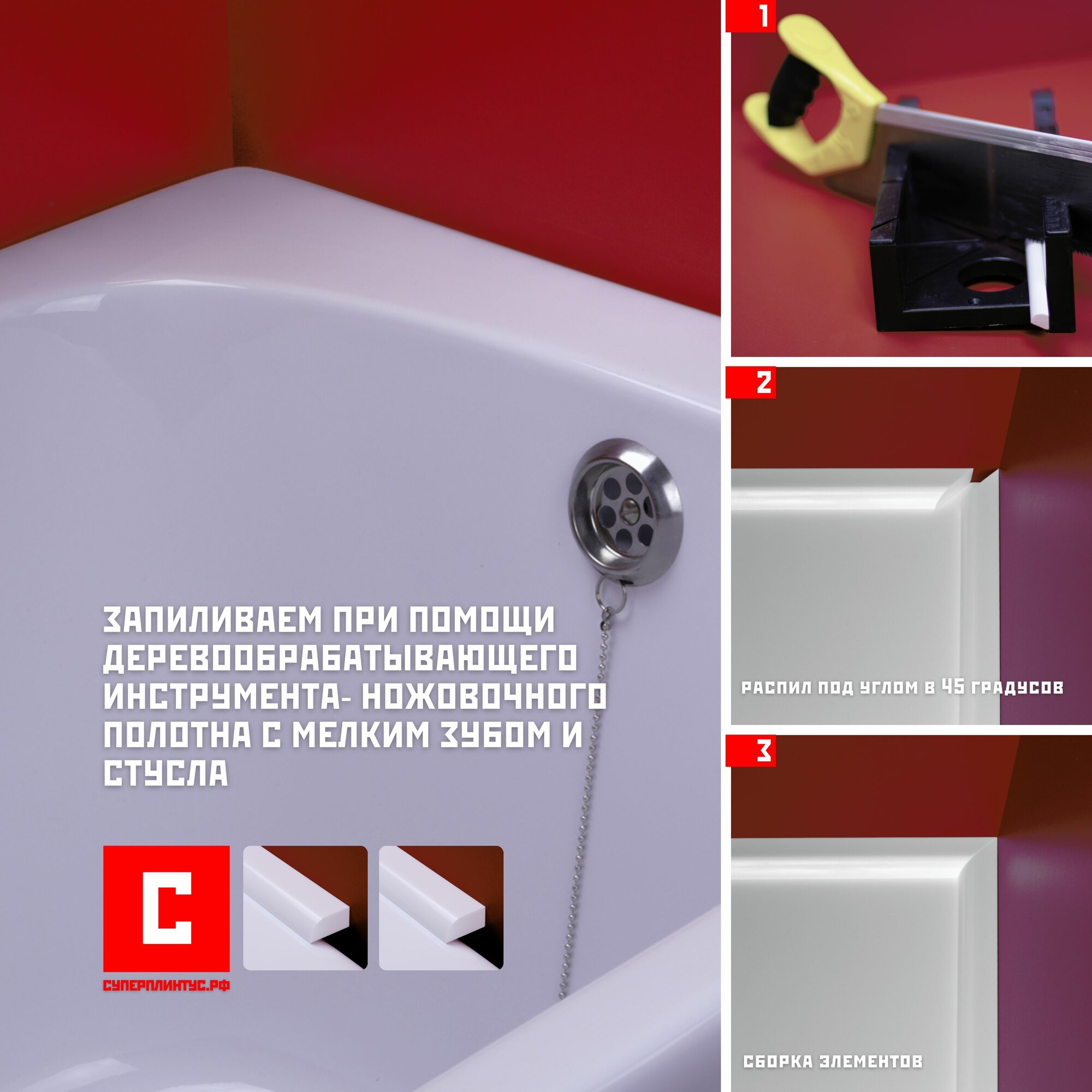 Комплект. Акриловый плинтус, бордюр универсальный, суперплинтус СП9- 90 сантиметров информация: