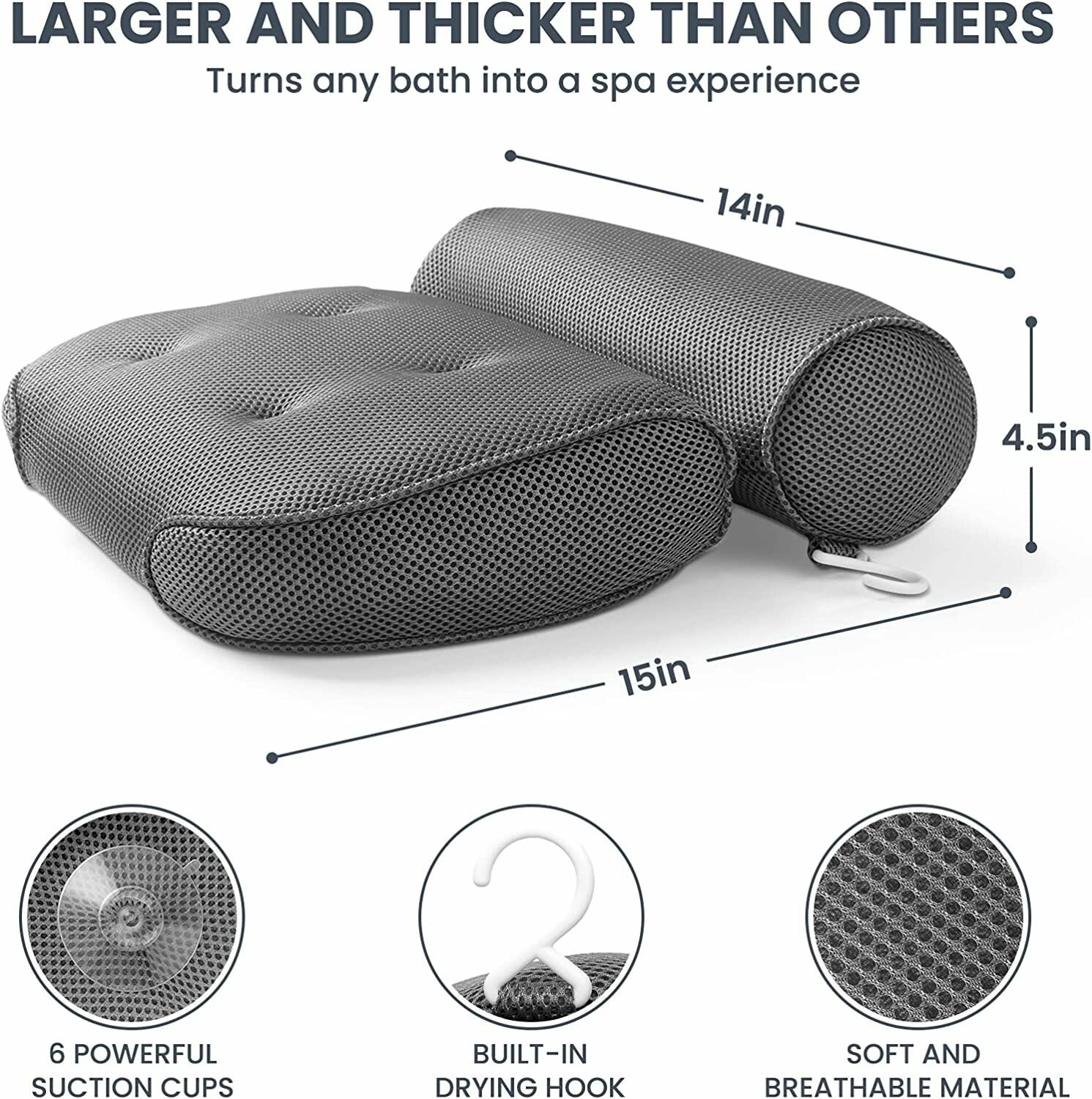 Отзывы на Подушка для ванны / Подголовник для ванны на присосках с крючком - "Спа" серая, 35x33x10, инновационный материал 3D-AIR-Mesh