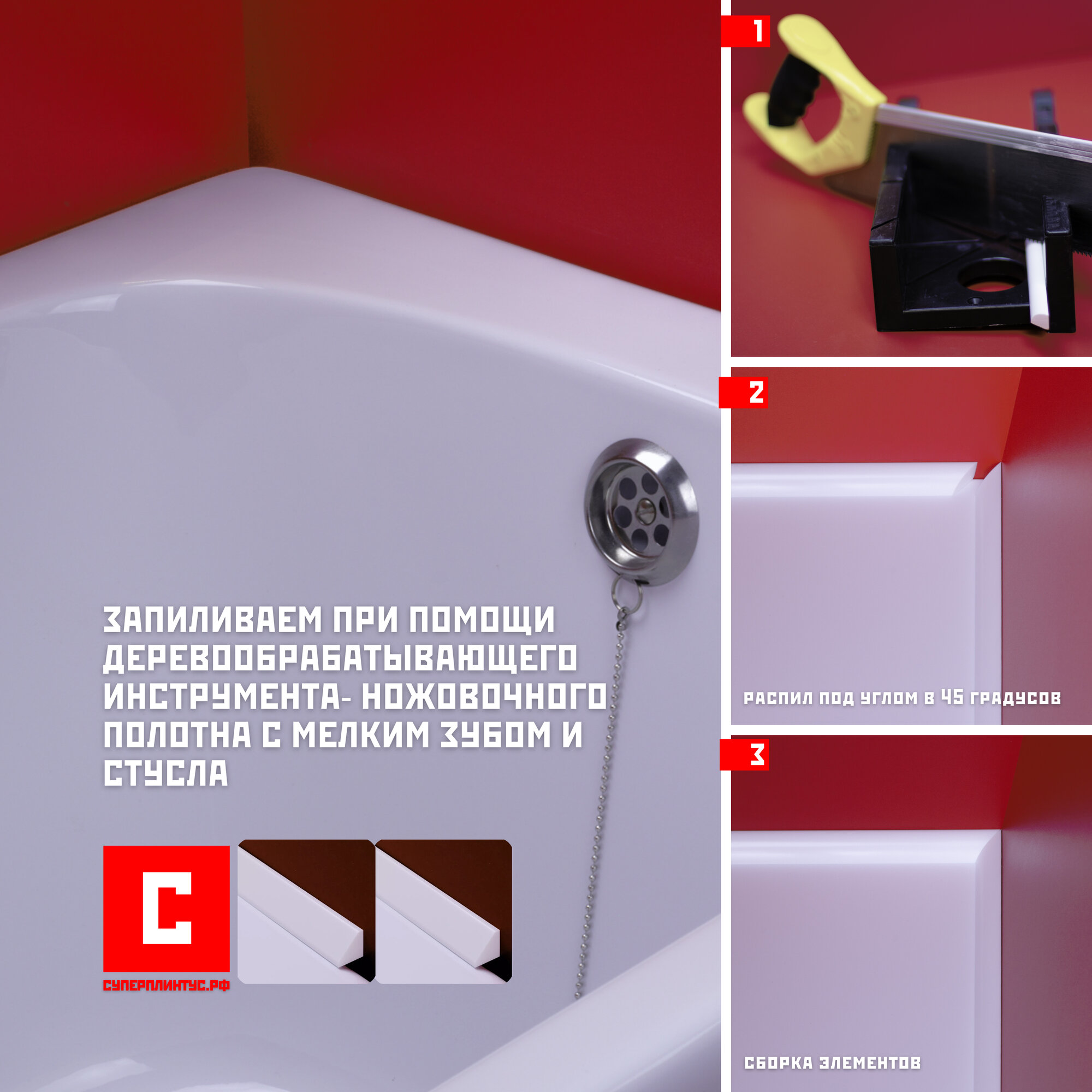 Комплект акриловых бордюров на ванну, суперплинтус СП19 информация:
