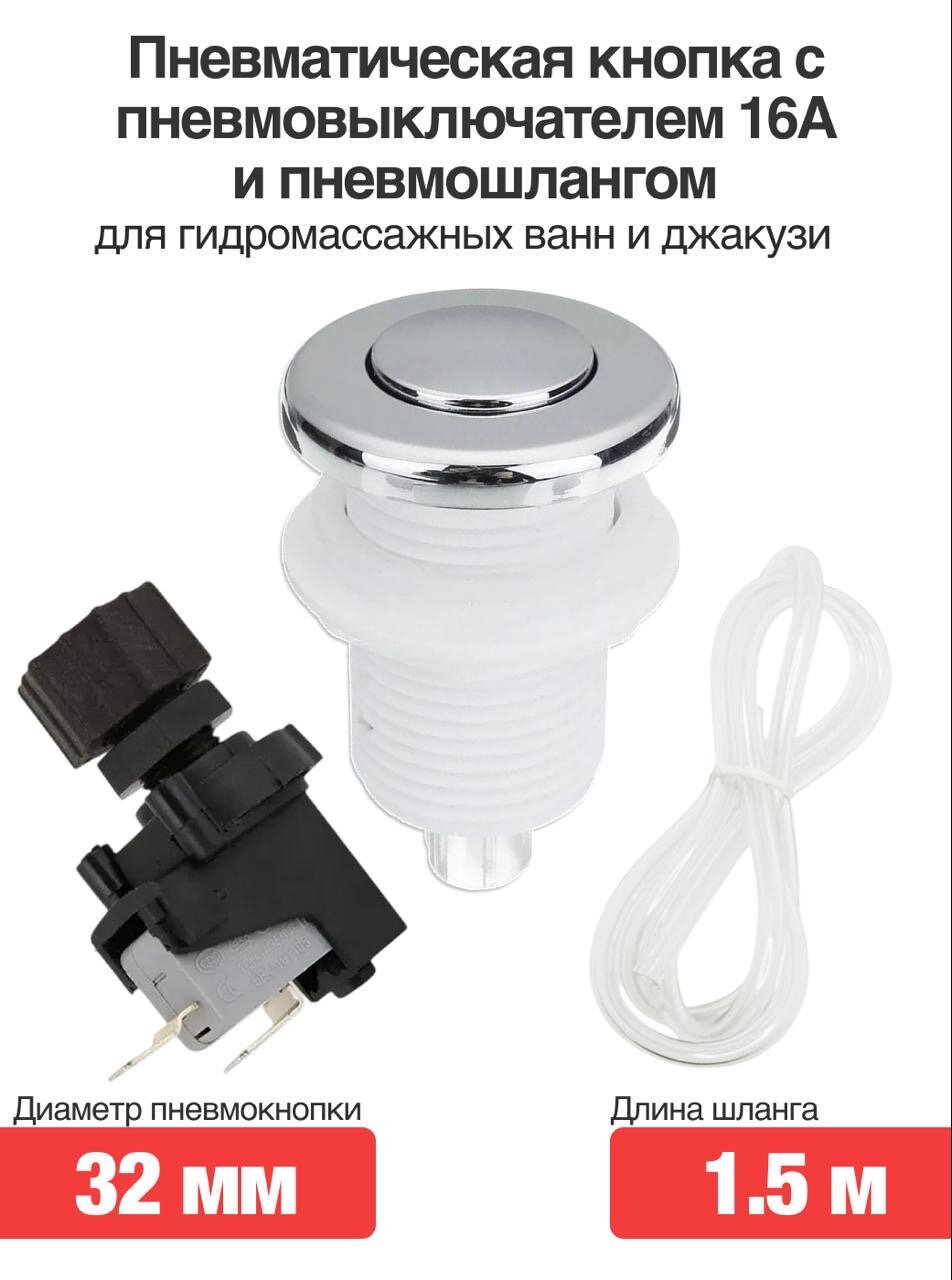Пневмокнопка D32 мм с пневмошлангом и выключателем 16А для гидромассажных ванн и джакузи информация: