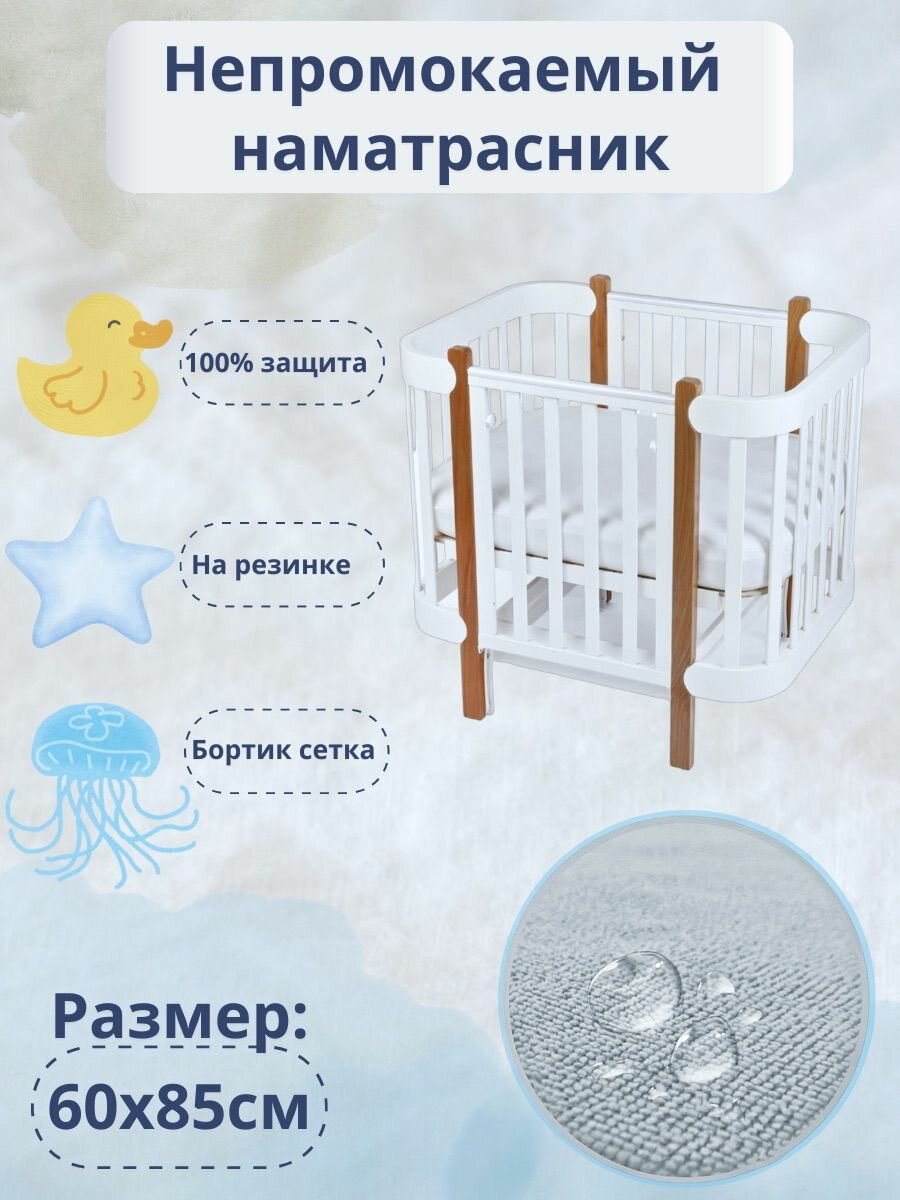 Непромокаемый наматрасник 51х81 см на резинке с бортами для детей, Наматрасник-чехол, Мулетон-Аквастоп