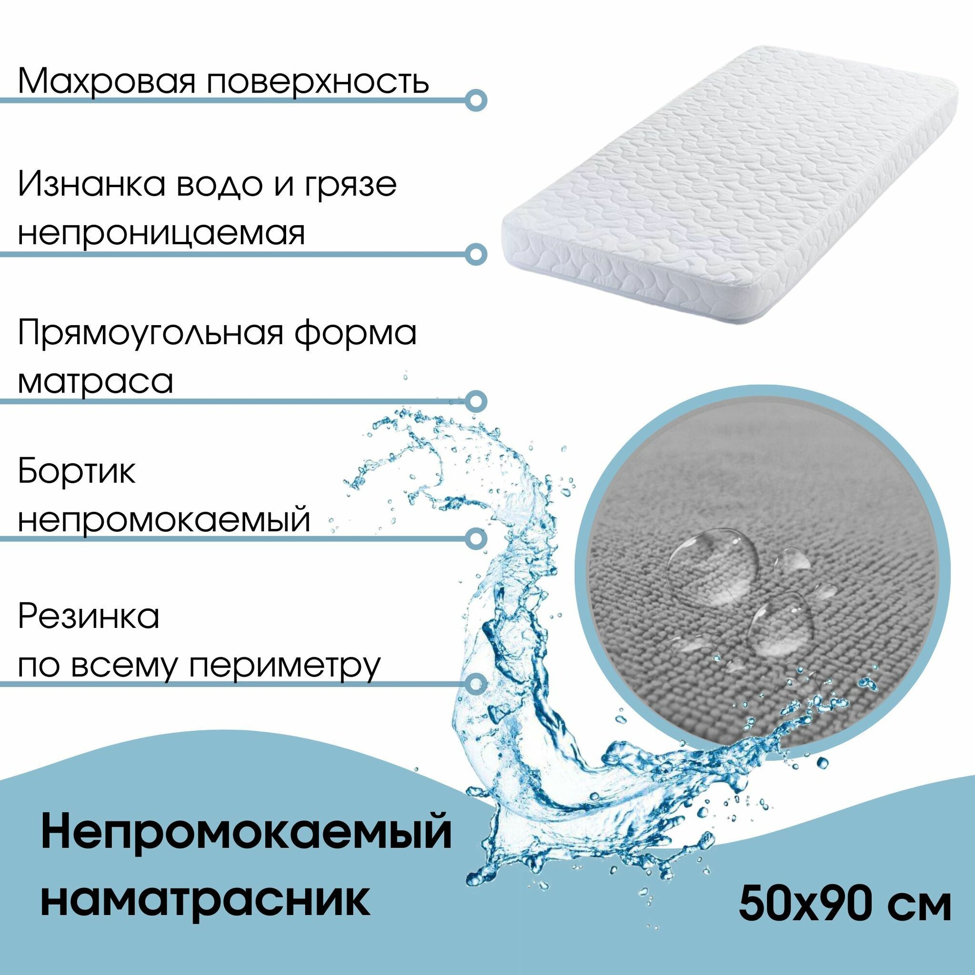 Наматрасник BabyGood "Аквастоп", непромокаемый, гипоаллергенный, серый, 50 х 90 см информация: