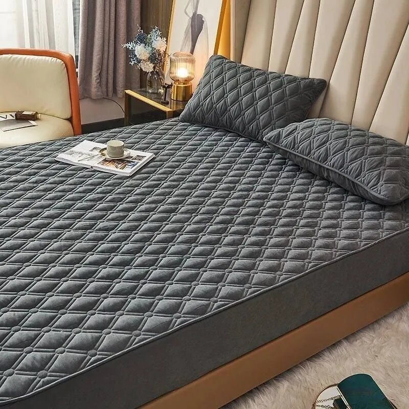 Наматрасник "Mency" 140х200 + 30 см стеганный с бортом на резинке по кругу без наволочек, темно серый. 2 381 ₽