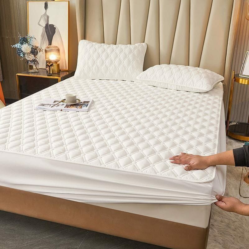 Наматрасник "Mency" 160х200 + 30 см стеганный с бортом на резинке по кругу без наволочек, белый. информация: