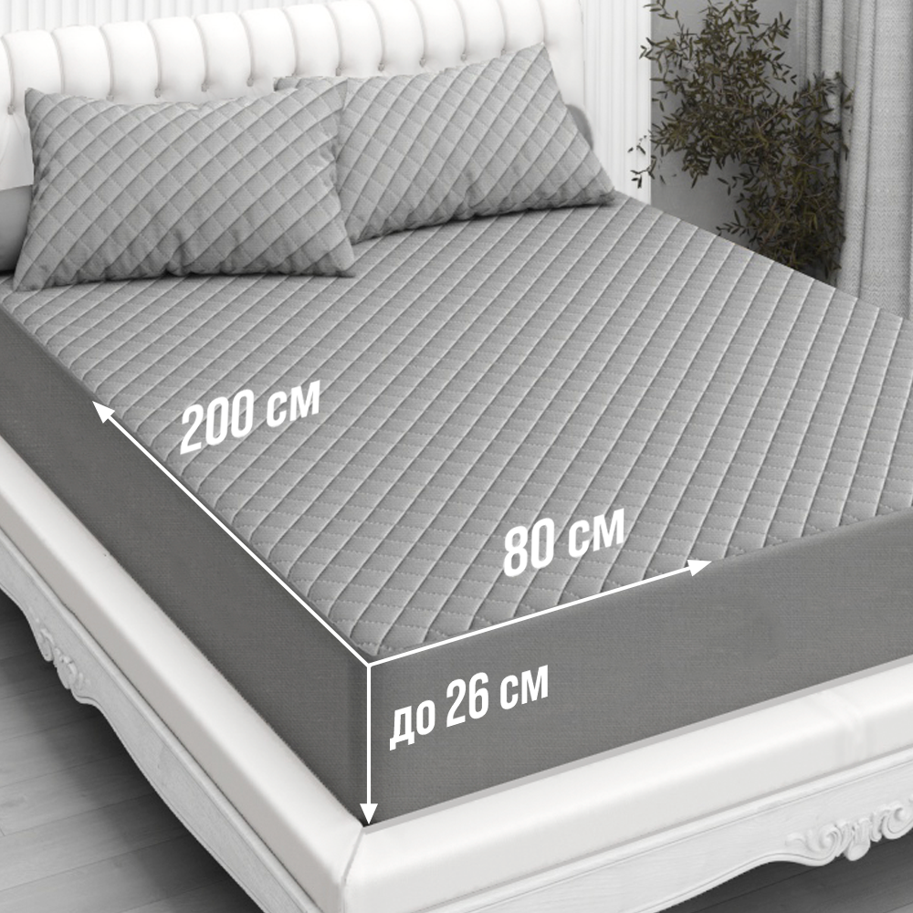 Экоториум Наматрасник 80х200 защитный, чехол на матрас стеганый на резинке с бортиками до 26 см, мягкий, Серый информация: