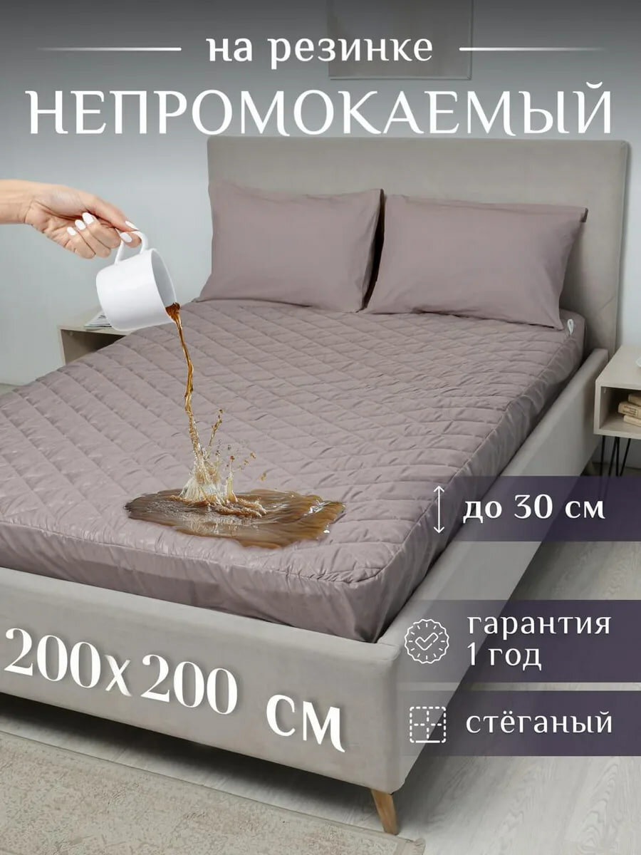 Отзывы на Экоториум Наматрасник 200х200 водонепроницаемый, чехол на матрас стеганый, на резинке с бортами до 30 см, Капучино