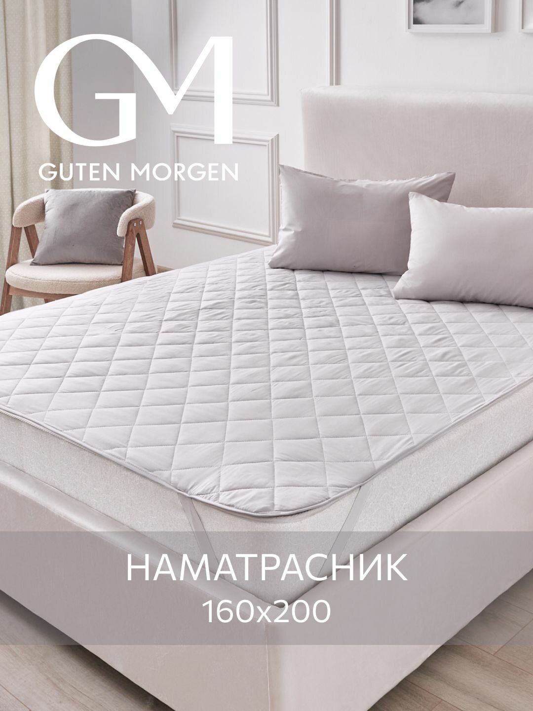 Отзывы на Наматрасник стеганый, Guten Morgen 160х200 , серый, Микрофибра, наполнитель - силиконизированное волокно
