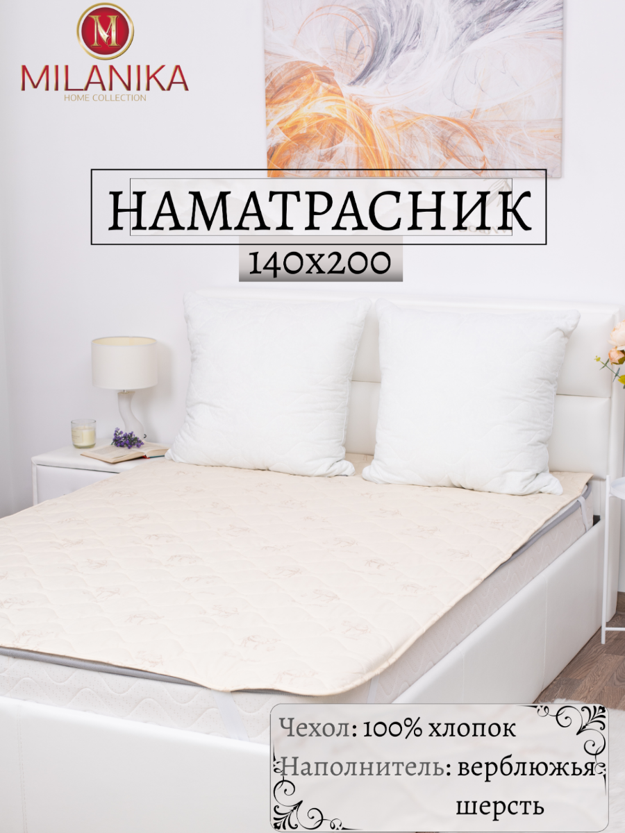 Отзывы на Наматрасник Миланика, верблюжья шерсть, стеганый, с резинкой по углам 140х200 см