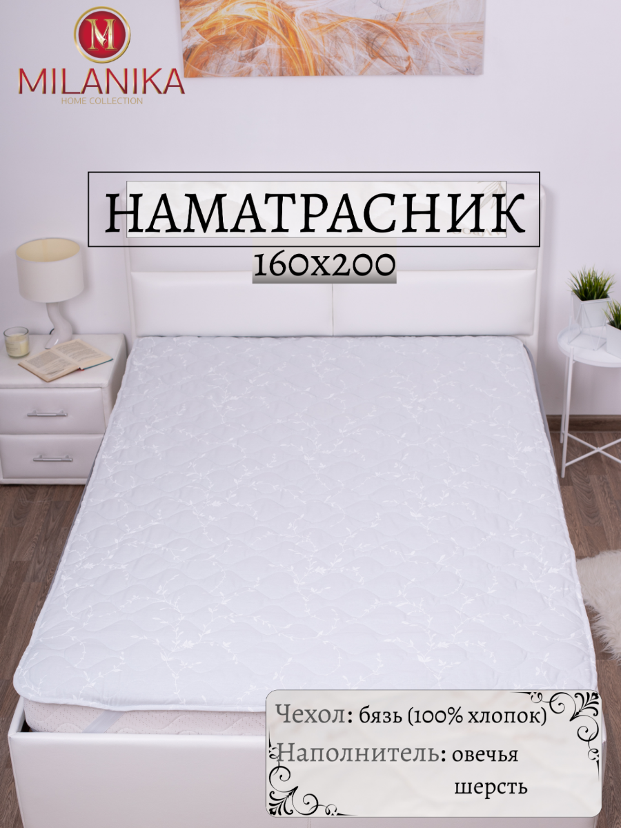 Наматрасник MILANIKA Овечья Шерсть Престиж, 100 % хлопок, 160 x 200 см информация: