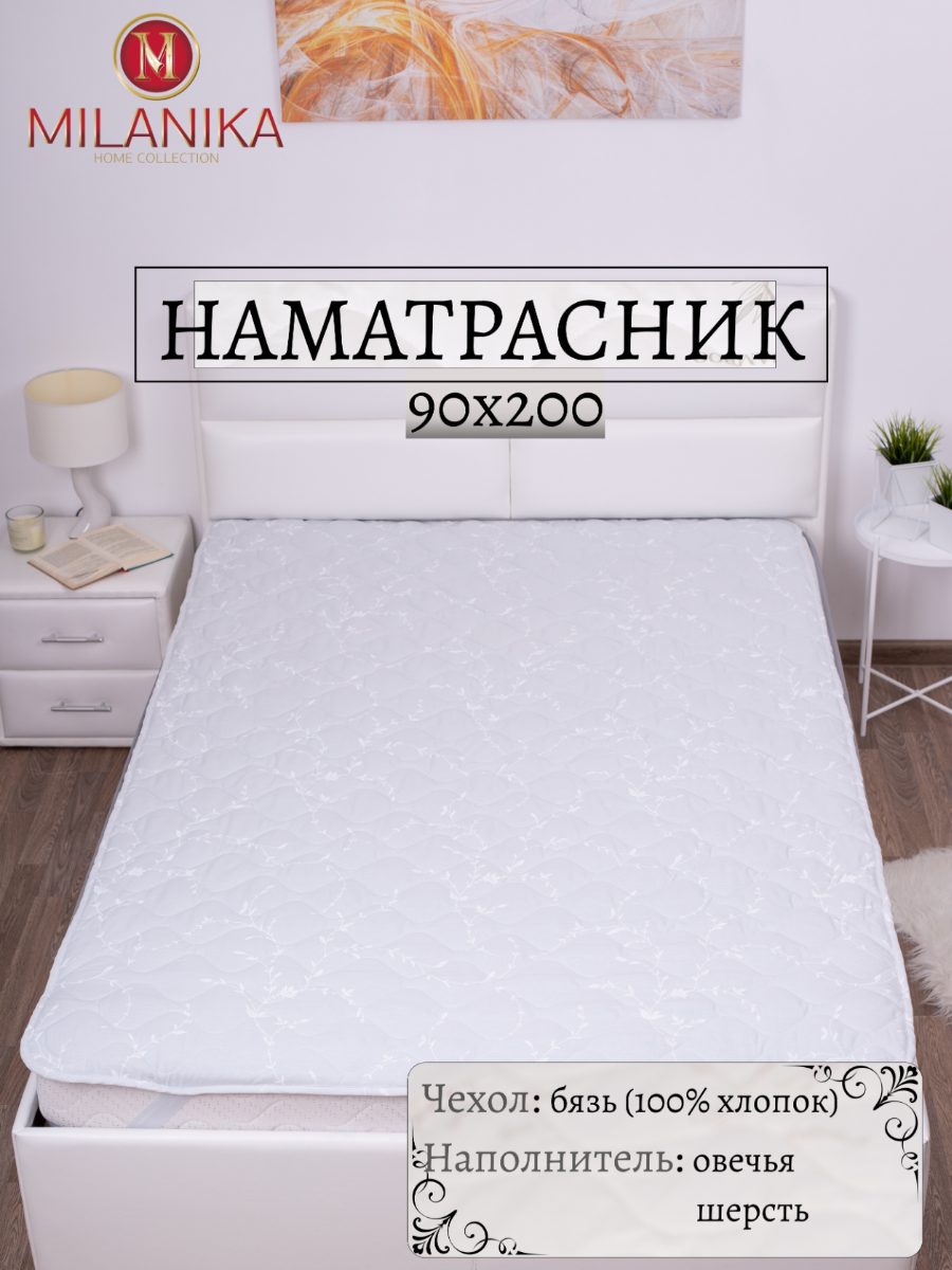 Наматрасник MILANIKA Овечья Шерсть Престиж, 100 % хлопок, 90 x 200 см информация: